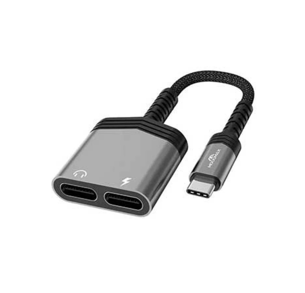وصلة USB-C بمنفذين USB-C للصوت والشحن في نفس الوقت هي وصلة تسمح لك بتوصيل جهاز يدعم منفذ USB-C بأجهزة أخرى مع منفذ USB-C، بحيث يمكنك الاستماع إلى الصوت وشحن الجهاز في وقت واحد. هذه الوصلة مفيدة بشكل خاص للأجهزة التي لا تحتوي على منافذ سماعة رأس مدمجة وتعتمد على منفذ USB-C للصوت. إليك بعض الميزات لوصلة USB-C بمنفذين USB-C للصوت والشحن:
